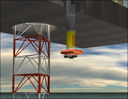 The breakaway platform includes a patented slip ring counter rotating bearing arrangement allowing the raft to rotate freely in the X,Y & Z planes around the boarding platform under the influence of wind and current in evacuation conditions. This is most desirable and a patented innovation as previous technology has only enabled the raft to move in the single vertical plane under the influence of wave action.