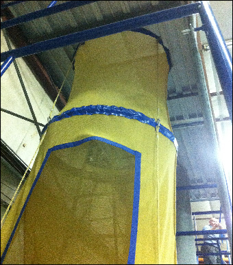 Single layered Netted Kevlar constructed vertical escape chute, the chute is supplied as a continuous chute with stainless steel bands sewn into each 4ft section.